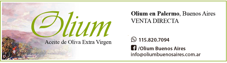 Olium, aceite de oliva extra virgen, es producido en forma artesanal en el privilegiado microclima del Valle de Traslasierra, en la provincia de Córdoba, Argentina. Olium es un producto premium, de aceitunas cosechadas manualmente y procesadas en el día. Elaborado bajo un moderno sistema de extracción en frío que asegura un nivel de acidez libre menor al 0.3%. Olium, es el Aceite de Oliva Extra Virgen más premiado nacional e internacionalmente. |